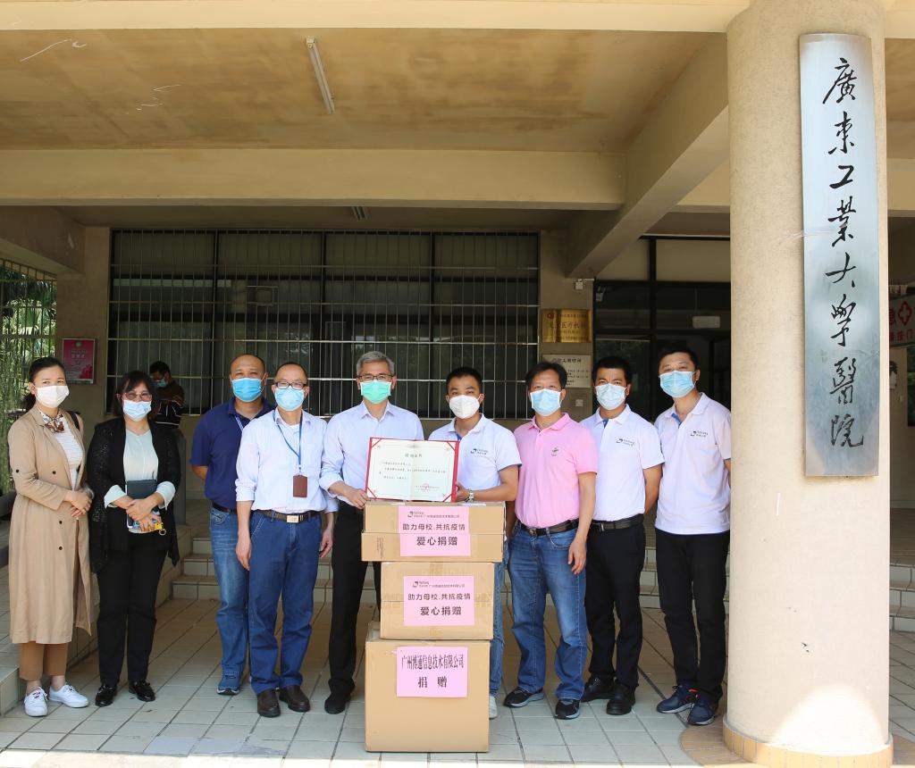 4月28日上午,我校计算机学院95级校友、广州博通信息技术有限公司董事长黎国华等一行4人向我校捐赠3套人脸识别热成像体温检测仪,支持母校战“疫”。学校新型冠状病毒感染的肺炎疫情防控工作领导小组常务副组长、副校长陈卓武代表学校在大学城校区接受了捐赠。学校疫情防控领导小组成员单位学校医院负责同志、对外联络与校友事务办公室、计算机学院负责同志等参加捐赠仪式。这些防护物资,将由学校医院调配用于校园疫情防控工作。