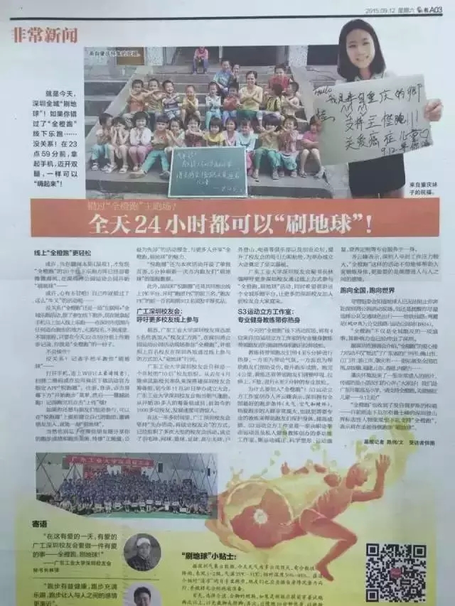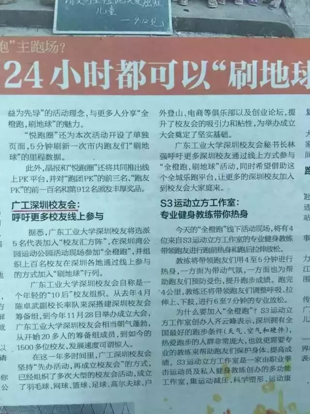 9月12日,深圳晶报携手深圳慈善会、深圳市社会组织总会、校友汇、深圳市登山户外运动协会等主办机构,发起了“全橙跑,刷地球”城市乐跑活动。深圳校友分会筹备组积极组织校友参与,受了《晶报》的重点报道。