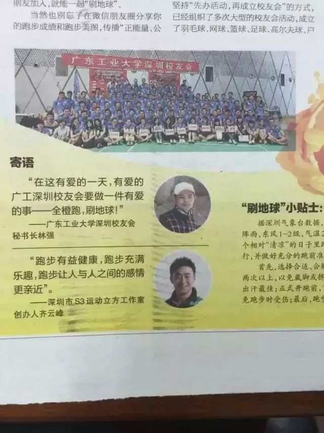 在接受《晶报》采访时,林强秘书长介绍了深圳校友分会热心公益的文化理念,并呼吁广大深圳校友积极参与线上跑步活动,弘扬分会的爱心理念与“家”文化。他表示,“在这有爱的一天,有爱的广工深圳校友会要做一件有爱的事---全橙跑,刷地球” 。