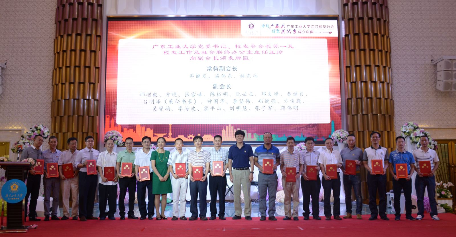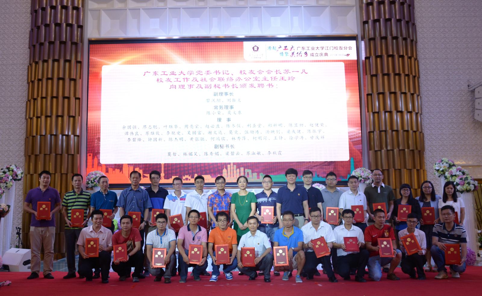 7月5日下午,江门校友分会成立庆典在江门市汇悦城隆重举行。由学校党委苏一凡书记带队,校友工作及社会联络办公室王玲主任,学校团委张育广书记,科技处刘鑫副处长,研究生院唐建伟副处长,机电工程学院植林书记,自动化学院罗小燕书记,轻工化工学院周东斌书记、苏兆祥副书记,信息工程学院刘怡俊副院长,土木与交通工程学院徐向东书记,管理学院陈楚泉书记,计算机学院李海山书记,材料与能源学院英健文副书记,环境科学与工程学院宁寻安院长,外国语学院刘伟书记,应用数学学院林伟英书记,物理与光电工程学院符志刚书记、王方副书记,艺术设计学院蒙裕兴副书记,政法学院陈飞旋副书记,建筑与城市规划学院莫卫文副书记,经济与贸易学院逄峰副书记,国际教育学院杨小帆副书记,校友工作及社会联络办公室曾庆尚顾问及老教师代表司徒忠教授出席了典礼仪式。佛山、惠州、珠海、河源、阳江、深圳、中山、东莞、韶关等兄弟校友组织代表及华工江门校友分会代表也到会祝贺。