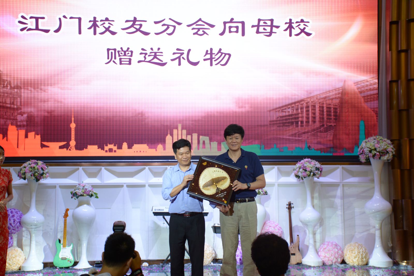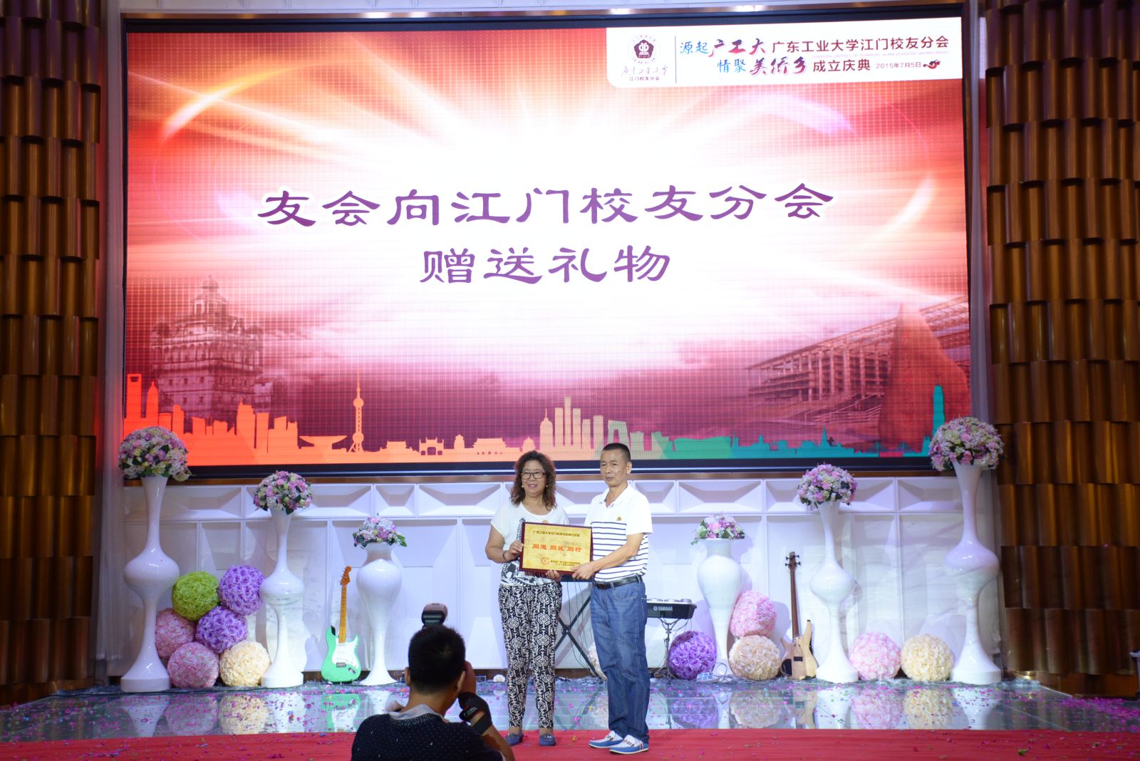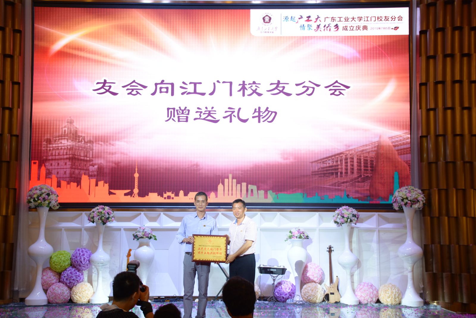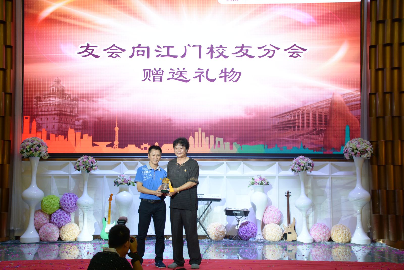 在庆典上,江门校友分会向母校、兄弟校友会赠送了国家级非物质文化遗产——新会葵扇,表达对母校的感恩之情以及对兄弟校友会的同窗情谊;惠州、中山、东莞、韶关等地校友分会及华工江门校友分会也向江门校友分会赠送了礼品,祝贺江门校友分会成立。
