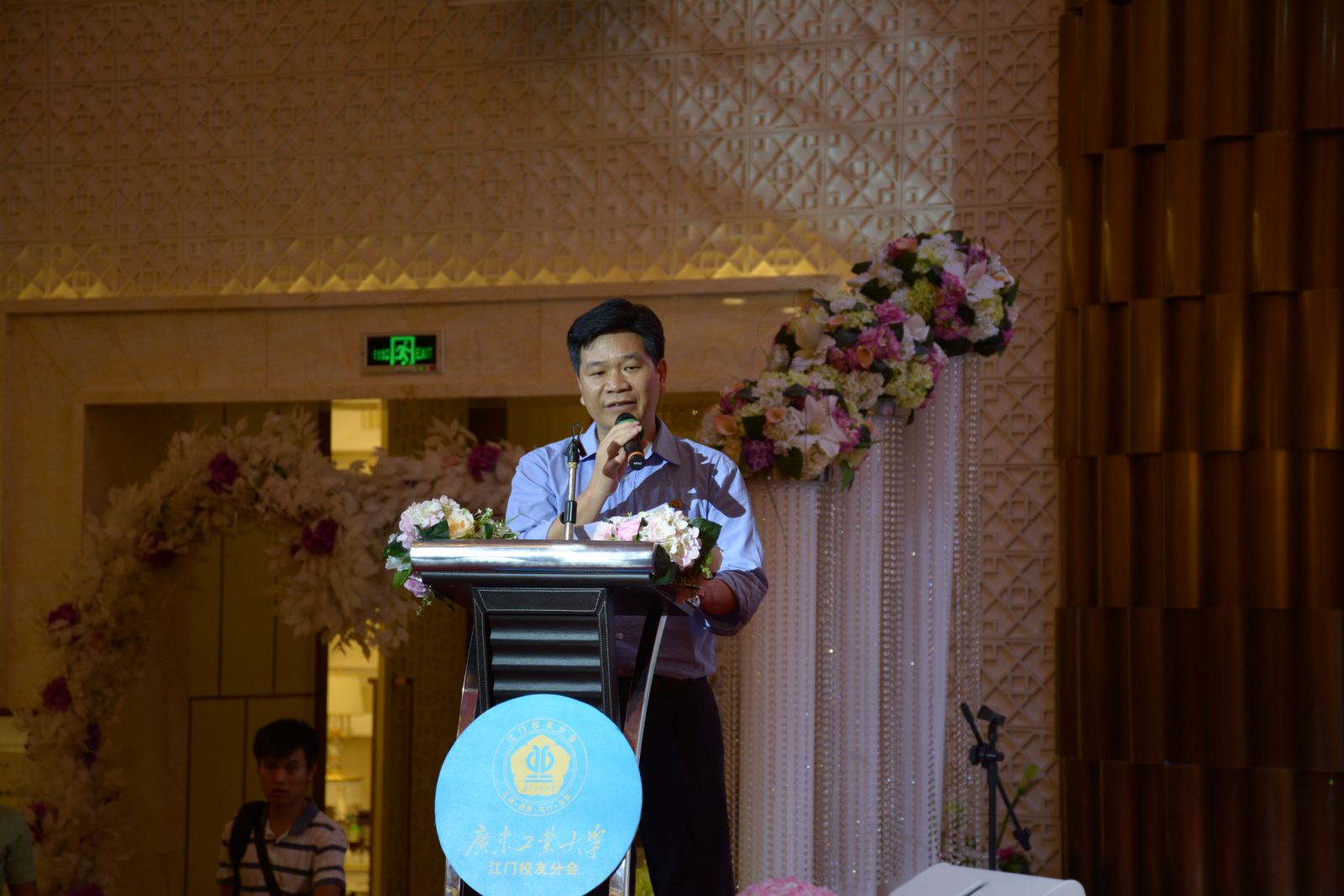 苏书记指出,从母校出去的每个校友,就像学校向社会发出去的一张张“名片”。校友们的表现,是对母校培养质量无声而有力的全方位诠释。当校友在岗位上有所建树,在事业上有所成就,当校友表现高超的素质和涵养,赢得世人赞许的目光,校友所树立的不仅是他个人的形象,更是培养他的母校社会上的公众形象;萦绕于校友的不仅是他个人的光辉,也为母校带来莫大的社会赞誉,为母校的发展增添了动力。苏书记指出,校友分会的成立,为母校与校友搭建了沟通桥梁,让校友们有了彼此叙旧、休息、交流、相互支持的平台。希望校友们通过校友分会,在教育、科技、文化等方面的多做交流,促进校友的发展、母校的发展,让校友分会成为承载着校友的满满情怀的校友之家。最后,苏书记寄语各位校友共同参与校友分会的事业,并祝江门校友分会越办越好。