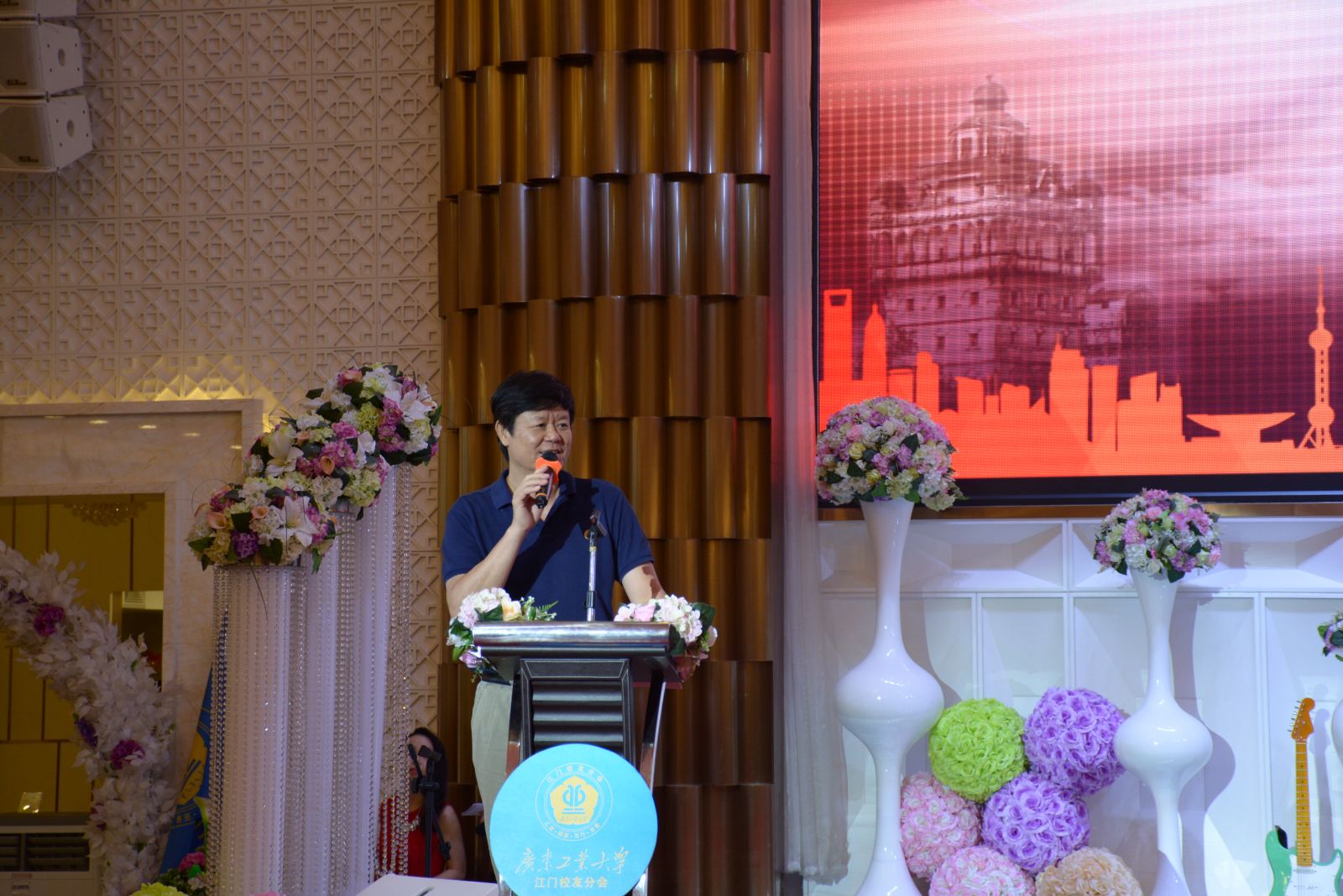 学校党委书记、学校校友会会长苏一凡致辞。他代表学校党委与行政、代表学校校友会对江门校友分会的正式成立表示祝贺;对江门校友分会理事会成员的辛勤付出及无私奉献,对江门校友们的大力支持表示衷心的感谢。苏书记说,学校自1958年正式开展高等教育办学以来,紧跟时代发展进步的步伐,紧紧抓住1995年三校合并、1999年本科生扩招、2004年进入大学城的重要发展机遇,通过整合三校资源、扩大招生规模、改善办学空间与教学条件,迅猛发展为广东省本科教育规模最大的学校。近年来,学校在师资队伍、学术科研、人才培养等方面发展迅速,成效显著。2014年,学校所有本科专业均在广东省普通高等学校第一批本科录取批次招生。在今年,学校更是在全省高校中脱颖而出,以巨大的优势入选广东高水平大学重点建设高校。苏书记表示,母校正在动员校内外的力量,集聚海内外的资源,正向着将学校建设成为与产业深度融合、最具活力、特色鲜明的高水平大学的方向努力。母校必定不会让校友们失望!