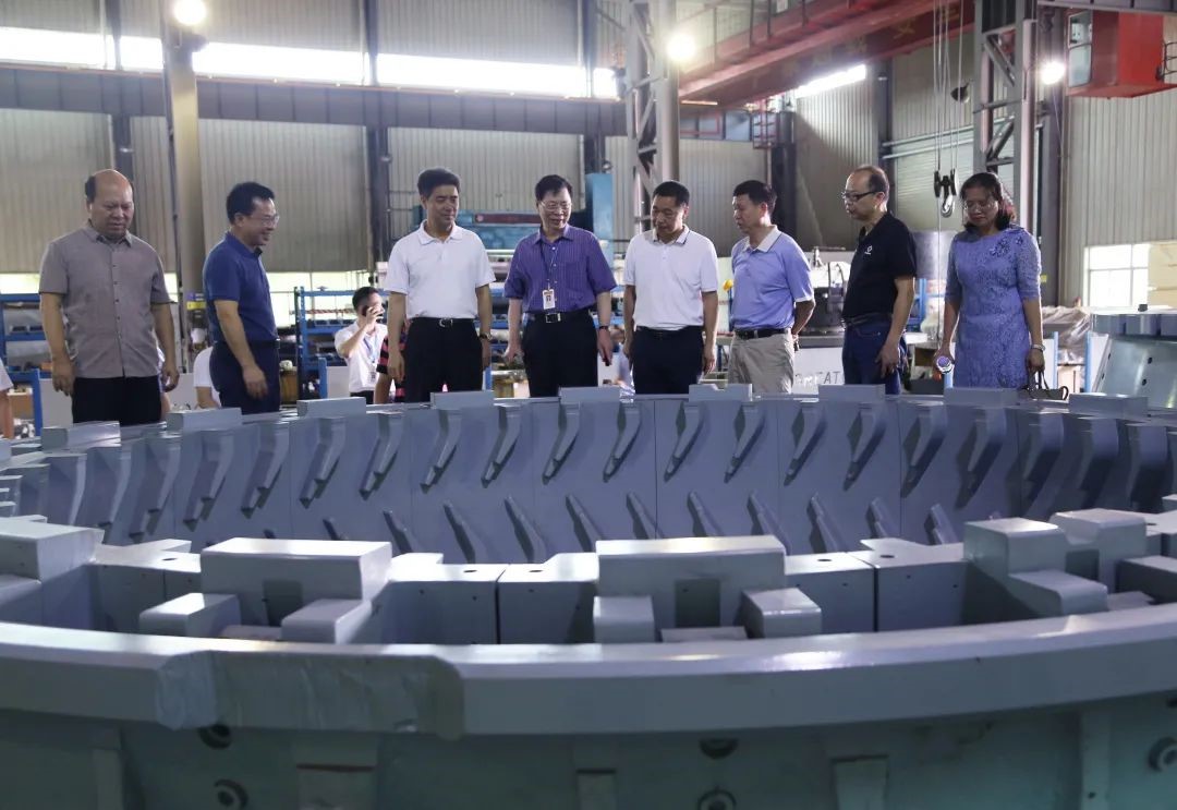 揭阳校友座谈会后,胡钦太一行参观了巨轮智能装备股份有限公司,在公司董事长吴潮忠陪同下参观了智能化车间、机器人展厅、巨胎模具车间及硫化机车间等,双方就校企合作进行了深入交流。