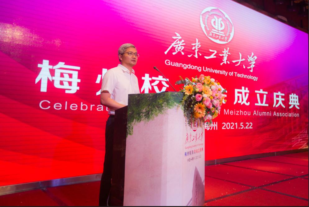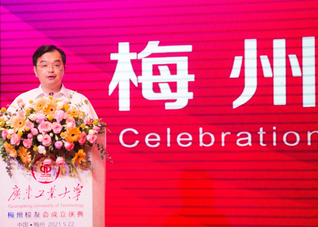 在成立庆典大会上,陈卓武副校长代表学校和学校校友会向梅州校友会的成立表示祝贺,并对筹建作出无私奉献的校友们表示衷心的感谢。他说,学校自1958年开办本科教育以来,始终扎根南粤,坚守“为党育人、为国育才”初心使命,传承“团结、勤奋、求是、创新”校训,秉持“与广东崛起共成长,为广东发展作贡献”的办学理念,为国家和社会培养了40余万英才俊杰,为经济社会发展提供了有力的人才支撑,“广东需要广工,广工离不开广东”。他希望梅州校友会要坚持以服务校友为宗旨,全面加强组织自身建设,团结校友,让广大校友紧紧依靠校友会这一平台,彼此关心、相互支持,实现共同发展;希望广大校友继续传承和弘扬广工精神,紧跟时代步伐,敢于挑战、勇于担当、甘于奉献,在服务经济社会发展中建功立业,实现人生理想和价值;希望校友们加强与母校的联系,关心支持母校发展,携手实现校友、母校事业共同发展。