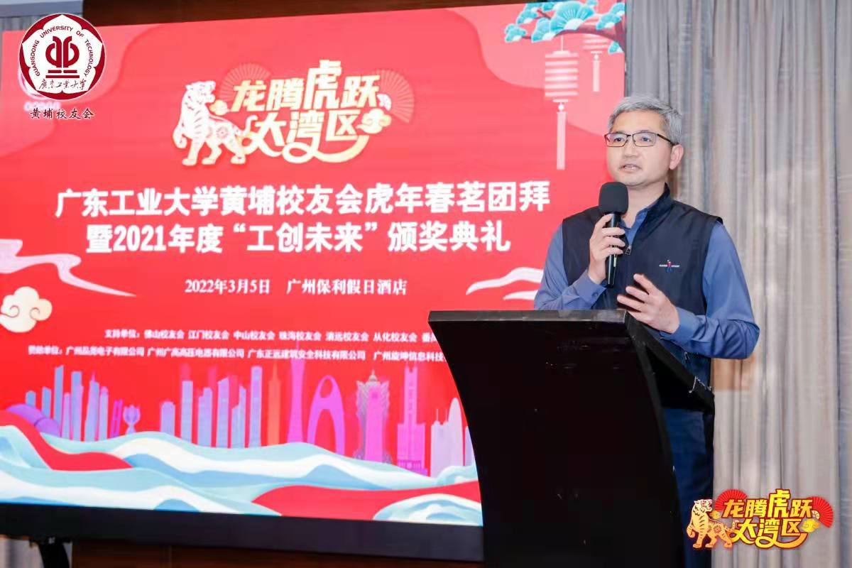 3月5日昨,黄埔校友联络处虎年春茗团拜暨2021年度“工创未来”颁奖典礼在广州保利假日酒店举行。学校党委常委、副校长、校友总会会长陈卓武带领对外联络与校友事务办公室、建筑与城市规划学院等负责人出席,学校珠海、佛山、江门、中山、从化、番禺、清远等七个地方校友组织负责人和代表、黄埔校友联络处理事等近五十人参加。活动由黄埔校友联络处秘书长、机制96级校友胡炜斌主持。
