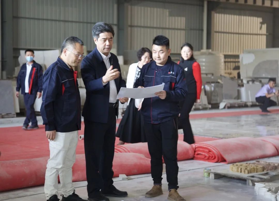胡钦太一行在云浮校友会李斯铭会长的陪同下,深入云浮市佑丰创雅居石业有限公司参观调研。公司负责人赖远志校友向学校领导介绍云浮市石材行业现状及佑丰石业公司产业高质量发展的设想。胡钦太详细了解云浮石材生产流程、市场营销、产业布局、未来规划等情况,并围绕科技创新、产业升级等话题与校友进行了深度的探讨。胡钦太强调,云浮是全国闻名“石材王国”,被誉为“中国三大石材产业基地”之一,校友要发挥地域优势,进一步提升企业核心竞争力,助力云浮石材产业转型升级,不断扩大石材产业规模,完善并优化石材产业链条,做强石材产业品牌,共同讲好云浮石文化故事。