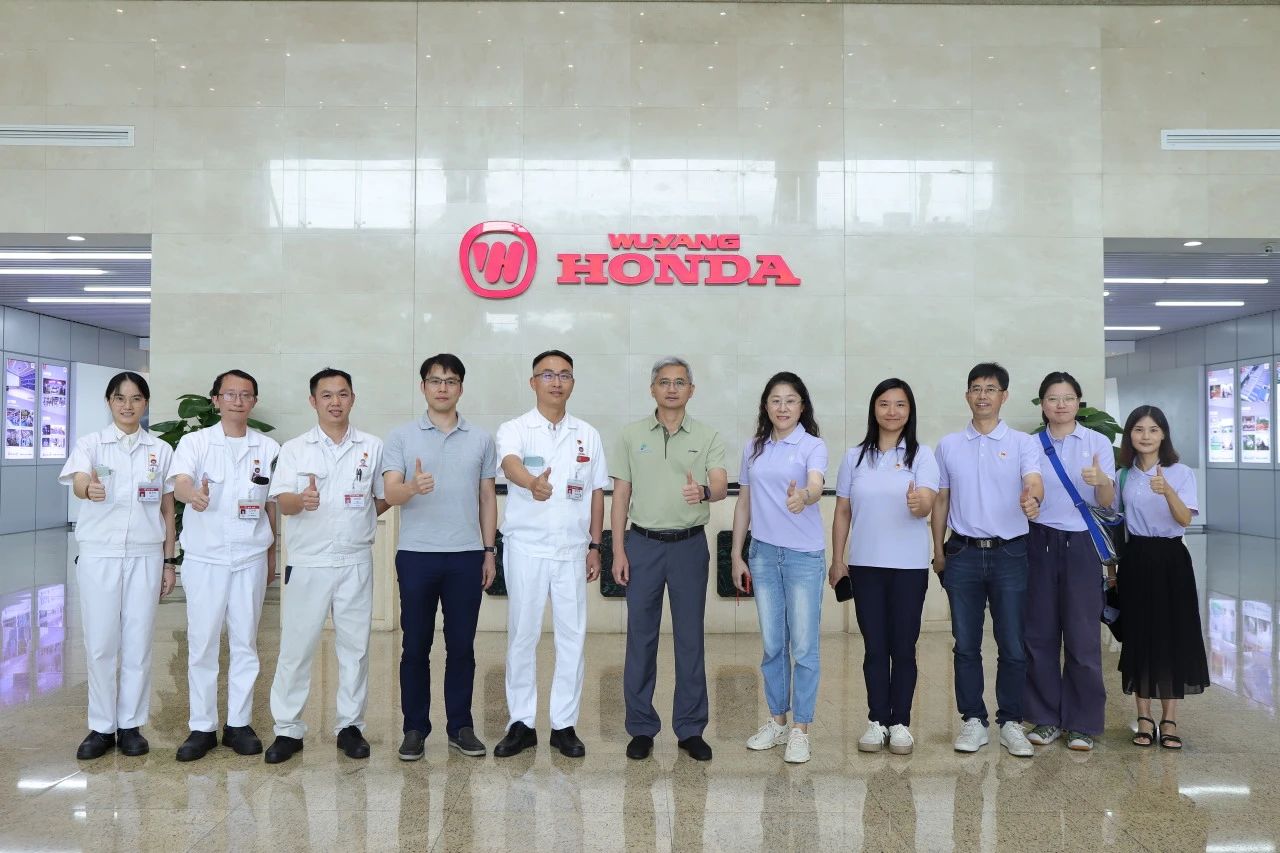 陈卓武一行走访参观五羊-本田摩托(广州)有限公司。受到了公司党委委员、副总经理,91级机械制造工艺及设备专业校友张文青的热情接待。
