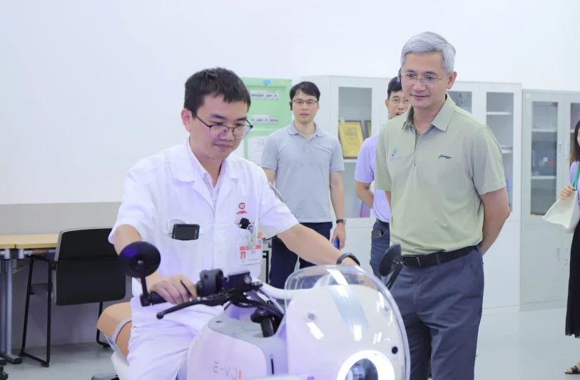 在技术部,陈卓武与企业的技术骨干进行了深入交流。技术部负责人介绍了公司在摩托车研发、技术创新以及智能化应用等方面的最新成果和未来发展方向。学校领导、老师和校友们认真聆听,并就学校相关专业的人才培养、课程设置以及实践教学等方面与企业进行了探讨。双方一致认为,随着科技的快速发展和产业结构的不断升级,对高素质技术技能人才的需求日益迫切。学校和企业应进一步加强合作,共同探索人才培养的新模式、新途径,实现人才培养与企业需求的无缝对接。