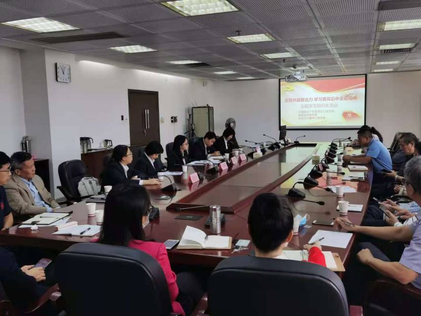 为深入贯彻学习习近平新时代中国特色社会主义思想,充分领会党的十九届五中全会重大意义和会议精神,11月27日上午,校友办评建中心党支部、招生教务党支部和中国银行广州荔湾支行党支部,在大学城校区行政楼602会议室,召开“支部共建聚合力 学习贯彻五中全会精神”主题学习组织生活会,会议由校友办评建中心(基金会、校友会)党支部书记杨文斌主持,马克思主义学院副教授周兵、招生教务党支部书记肖明、中国银行广州荔湾支行党支部温瑶和三个支部共25名党员同志出席会议。